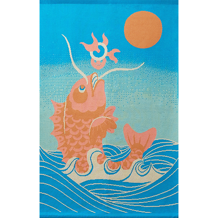 The painting of ‘Jumping Carp’ depicts a legend of a carp that jumps against a strong current and turns to a dragon.